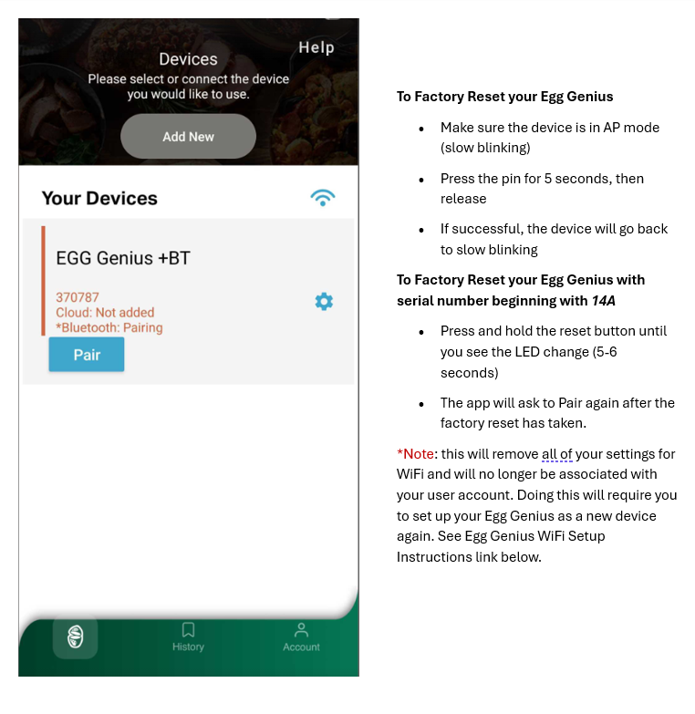 If you have an Egg Genius smoker controller with a serial number beginning with a 14A (the serial number can be found on the neck of your controller). Please follow the instructions below to get your Egg Genius connected to your home WiFi network.